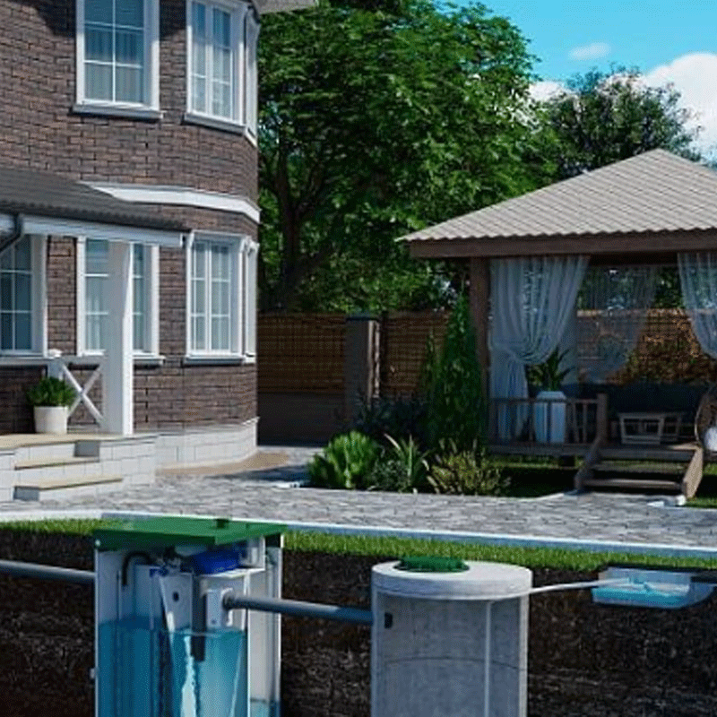 УСТАНОВКА ОЧИСТКИ СТОЧНЫХ ВОД ДЛЯ ЗАГОРОДНОГО ДОМА, ДАЧИ, КОТТЕДЖА, ГРУППЫ ДОМОВ С ДВУМЯ КОМПРЕССОРАМИ
